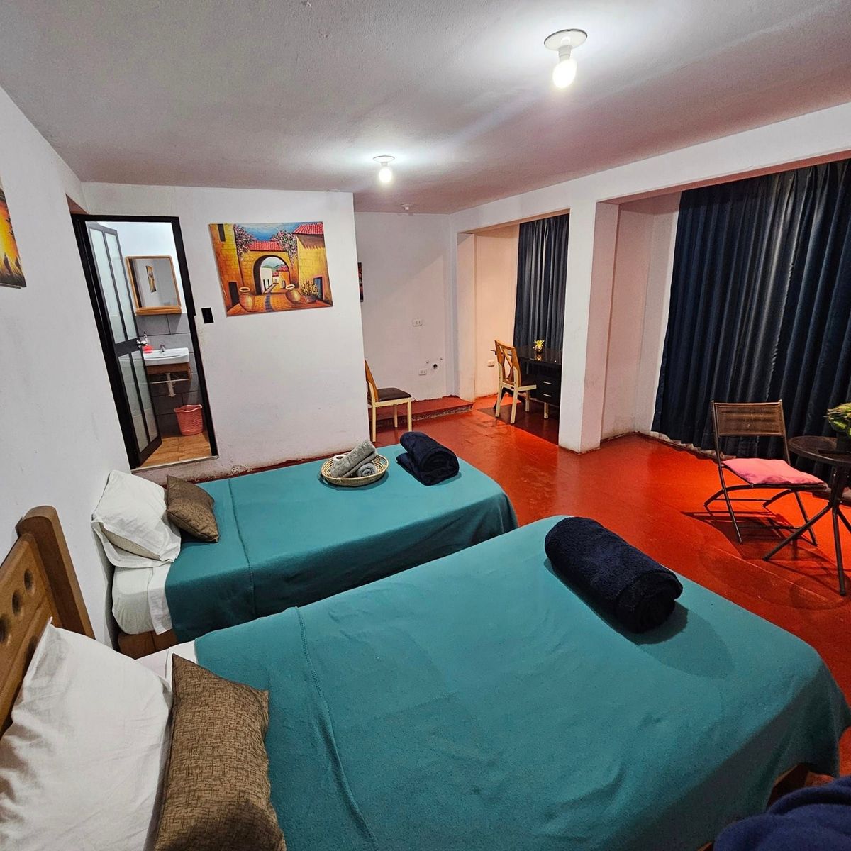 Habitación doble con dos camas de plaza y media, capacidad para 2 personas.